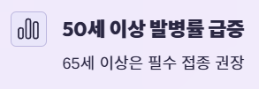 50세 이상부터 발병률이 급증하며, 65세 이상은 백신 접종이 권고가 아닌 거의 필수적으로 추천드립니다.